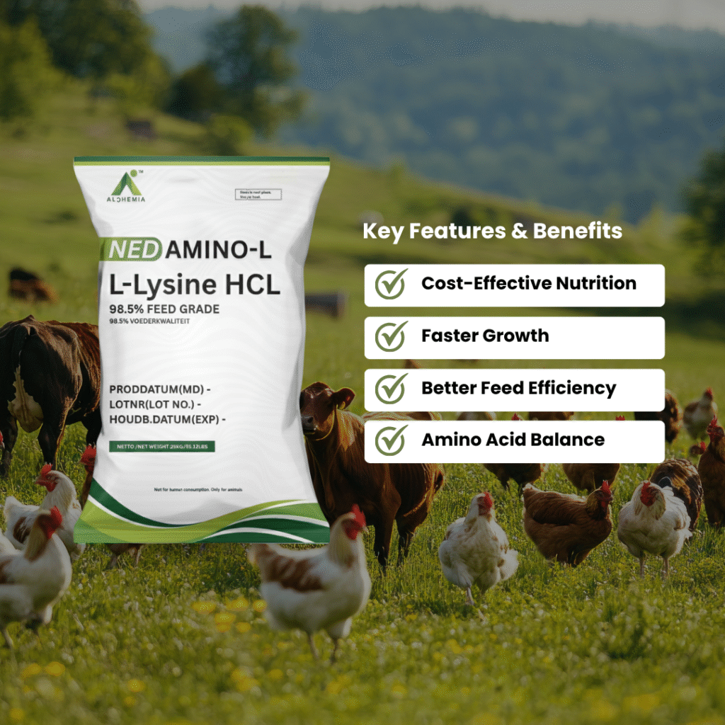 As the first limiting amino acid in most cereal-based diets, Lysine plays a key role in protein synthesis, muscle development, immune response, and enzyme production — making it indispensable in modern feed formulations.