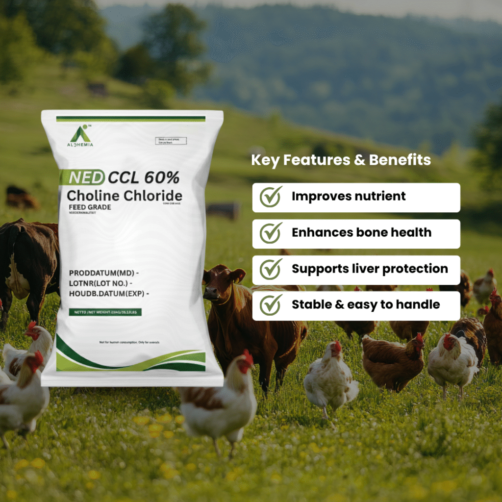 NED CCL 60% offers consistent nutrient value, uniform mixing, and reliable performance across poultry, livestock, and aquaculture diets.